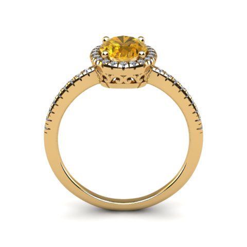 1 1/4 Carat Oval Shape Citrine and Halo Diamond Ring In 14 Karat Yellow Gold