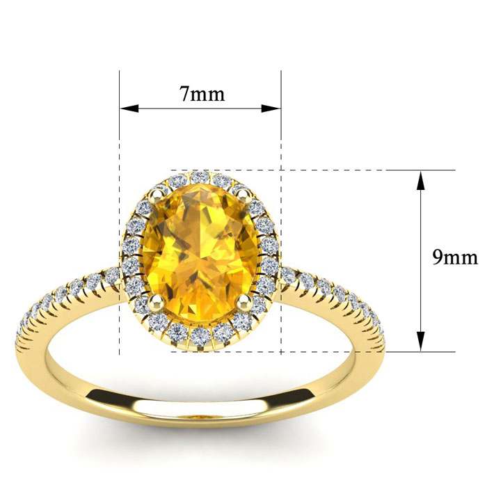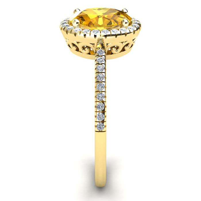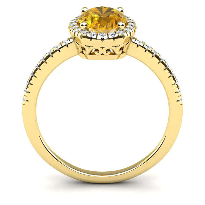 1 1/4 Carat Oval Shape Citrine and Halo Diamond Ring In 14 Karat Yellow Gold
