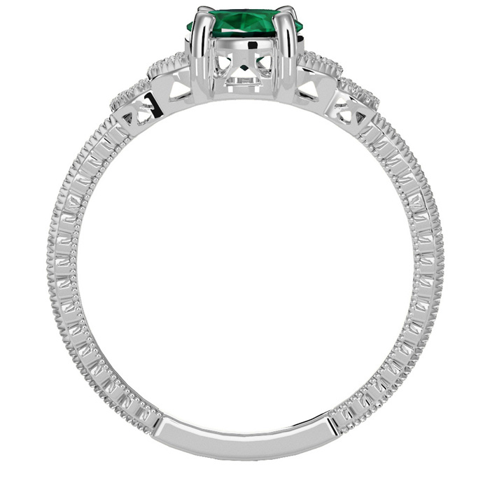 This classic emerald and diamond ring reminds me of an antique piece found in your great grandmother’s jewelry collection. The stunning double row of diamonds accent the large emerald stone perfectly. This beautiful ring would make anyone notice you.