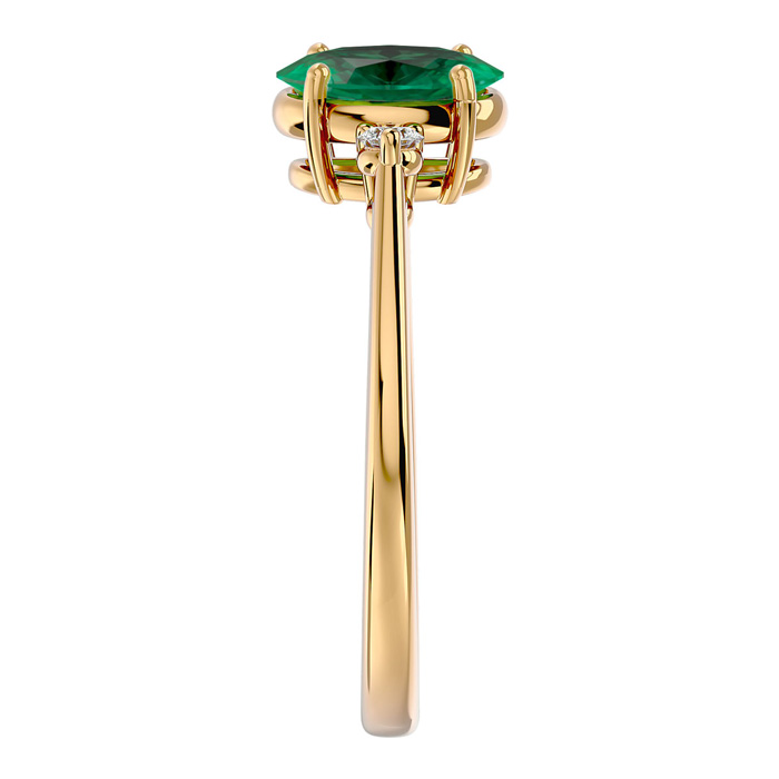 1 1/4 Carat Oval Shape Emerald and Two Diamond Ring In 14 Karat Yellow Gold