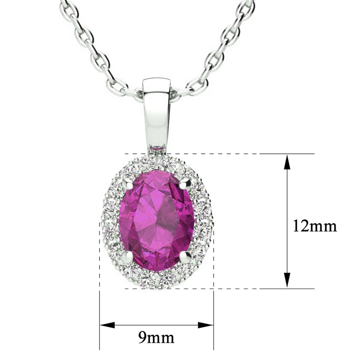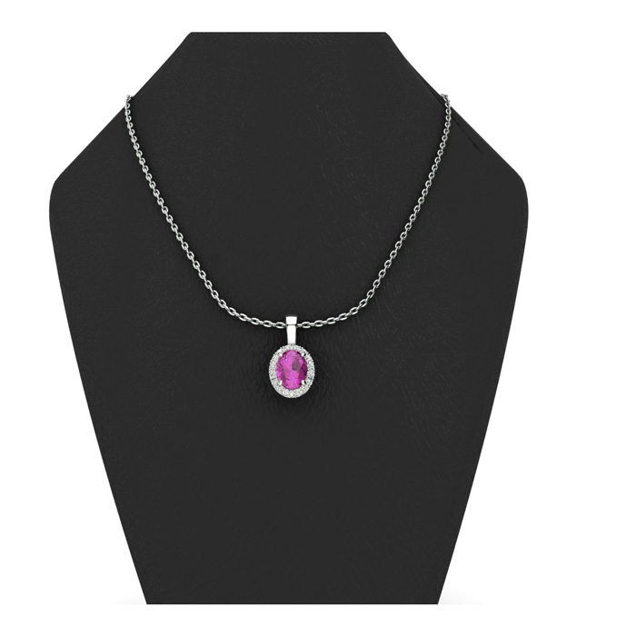 1 1/4 Carat Oval Shape Pink Sapphire and Halo Diamond Necklace In Sterling Silver With 18 Inch Chain