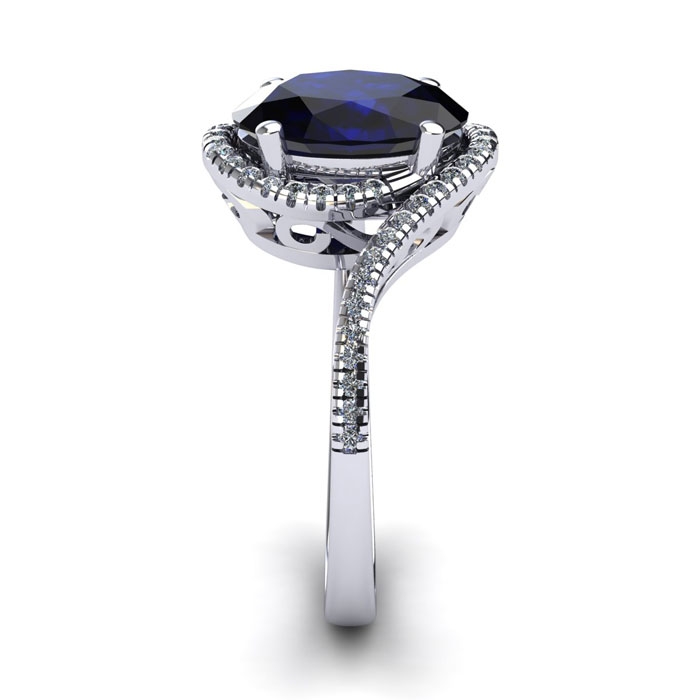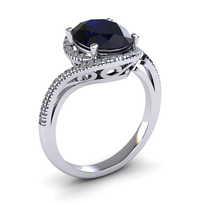 1 1/4 Carat Oval Shape Sapphire and Halo Diamond Ring In 14 Karat White Gold
