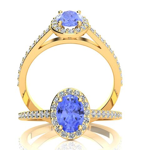 1 1/4 Carat Oval Shape Tanzanite and Halo Diamond Ring In 14 Karat Yellow Gold
