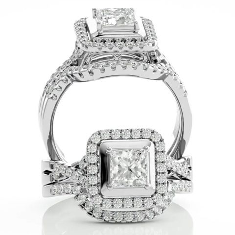 1 1/4 Carat Princess Shape Diamond Bridal Set In 14 Karat White Gold