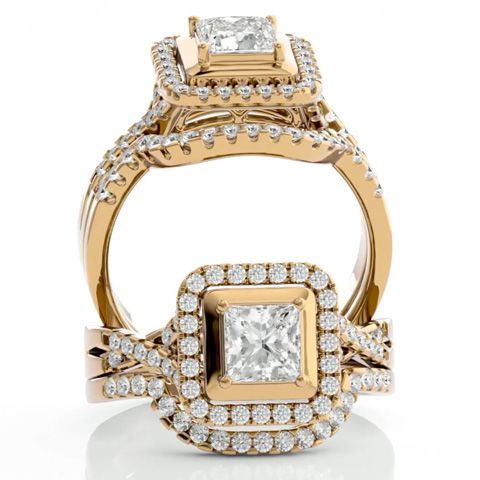 1 1/4 Carat Princess Shape Diamond Bridal Set In 14 Karat Yellow Gold