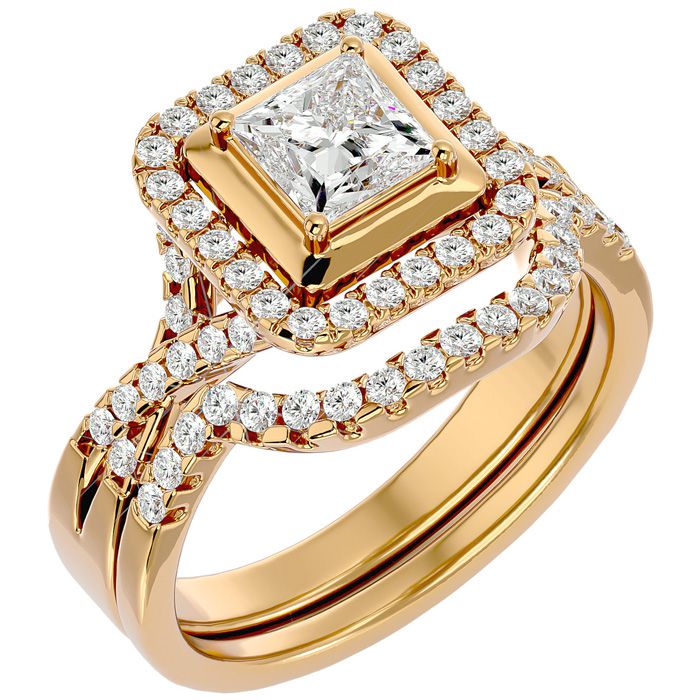 1 1/4 Carat Princess Shape Diamond Bridal Set In 14 Karat Yellow Gold