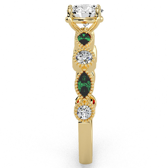 1 1/4 Carat Natural Round and Marquise Vintage Diamond and Emerald Engagement Ring In 14 Karat Yellow Gold