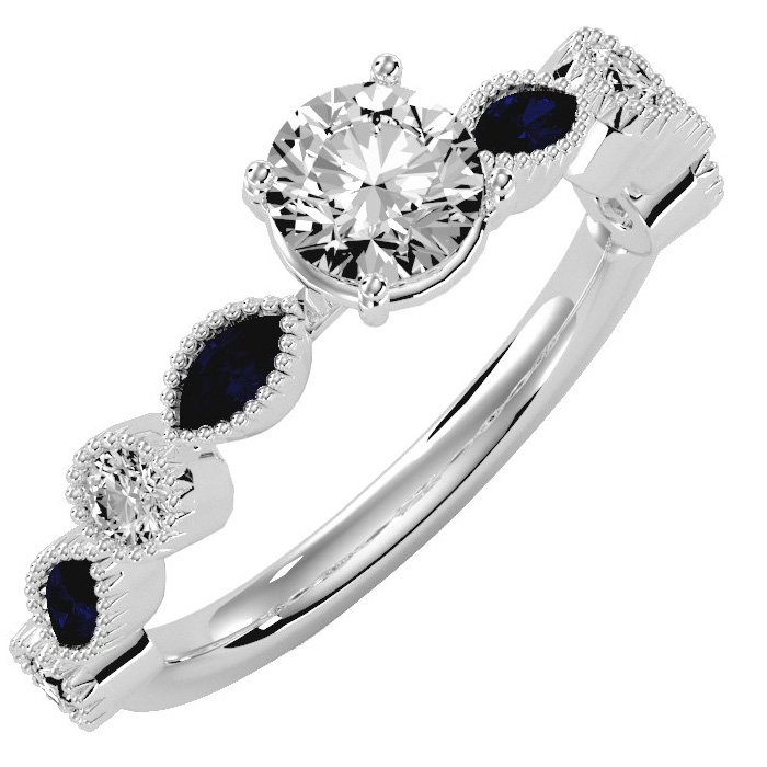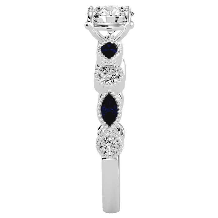 1 1/4 Carat Natural Round and Marquise Vintage Diamond and Sapphire Engagement Ring In 14 Karat White Gold