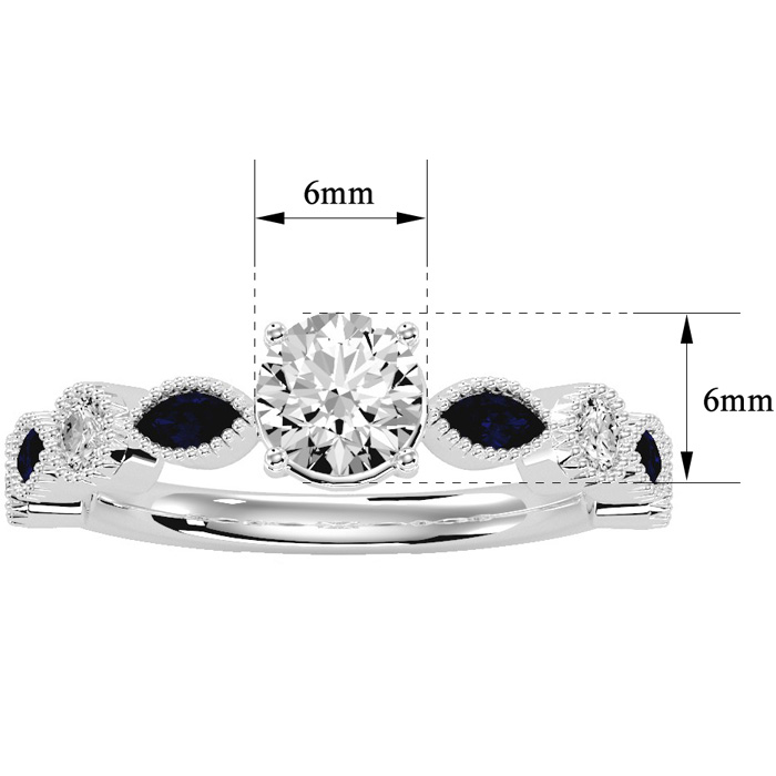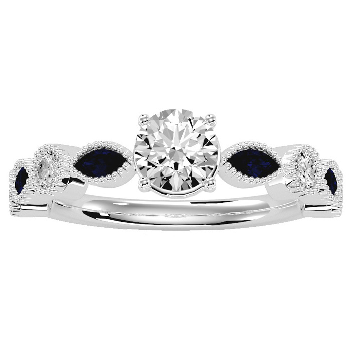 1 1/4 Carat Natural Round and Marquise Vintage Diamond and Sapphire Engagement Ring In 14 Karat White Gold