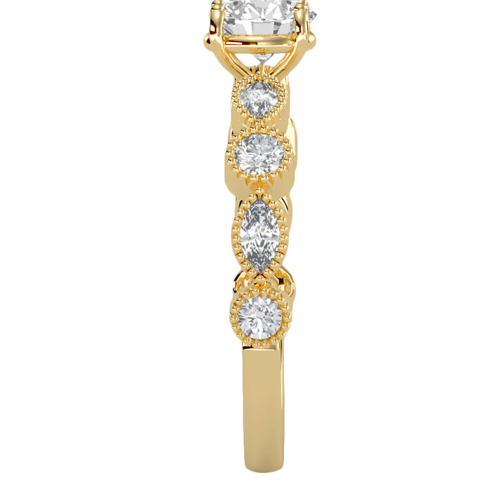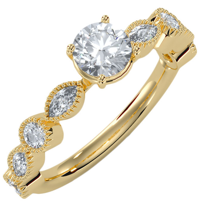 1 1/4 Carat Natural Round and Marquise Vintage Diamond Engagement Ring In 14 Karat Yellow Gold
