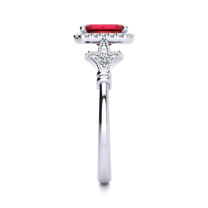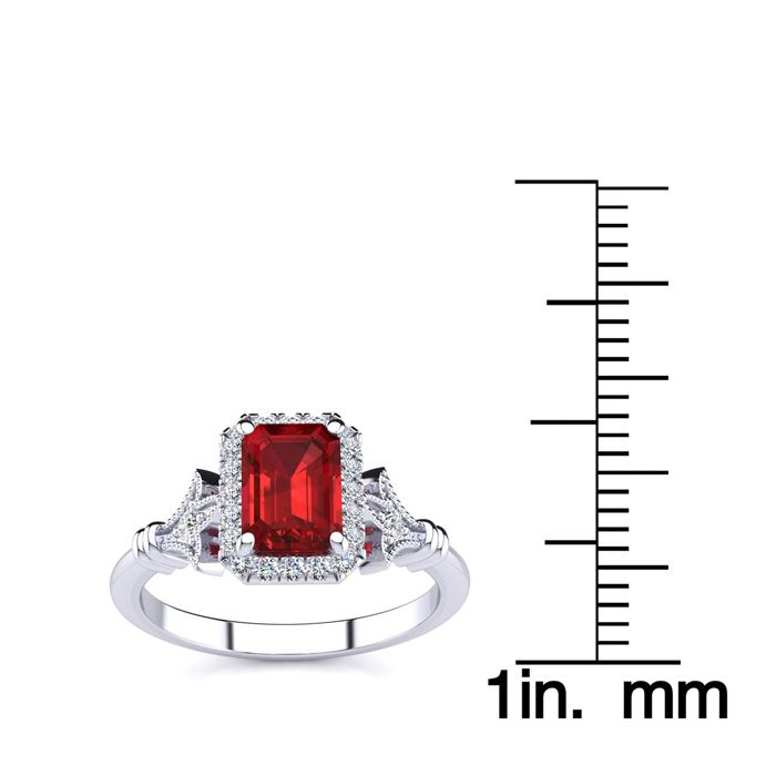 The ruby is deep and beautiful. The diamonds are smaller than I'd like but perfect for this ring setting. If you're looking for a vintage feel, this is the ring.--shanninb2.