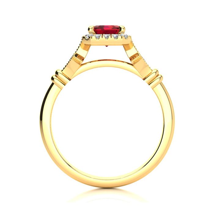 Retrograde Birthstones™ 1 1/4 Carat Ruby and Halo Diamond Vintage Ring In 14 Karat Yellow Gold