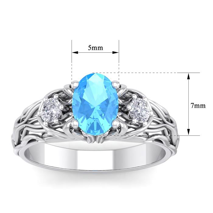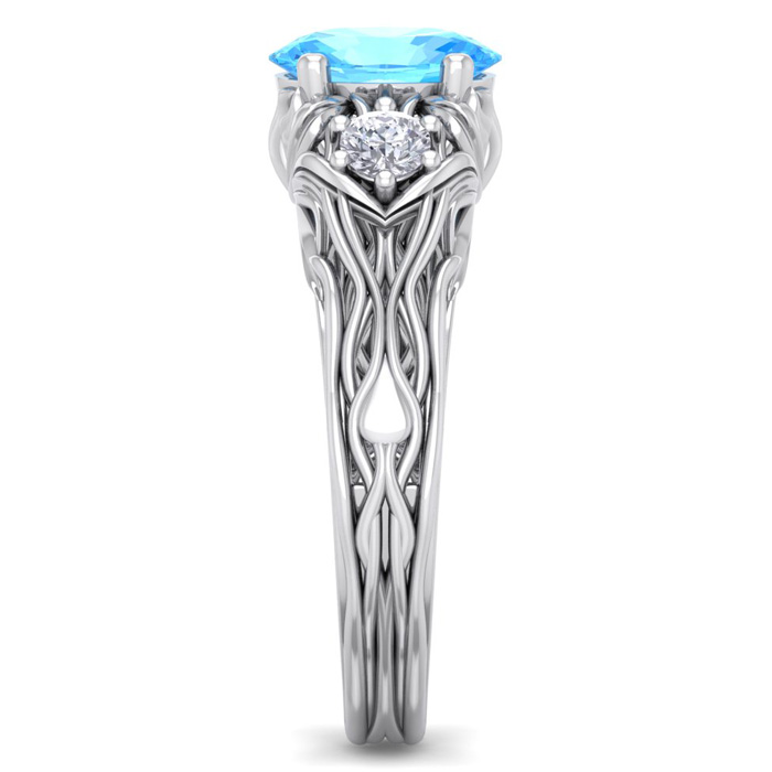 1 1/4 Carat Oval Shape Blue Topaz and Diamond Intricate Vine Engagement Ring In 14 Karat White Gold