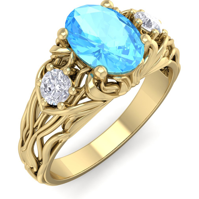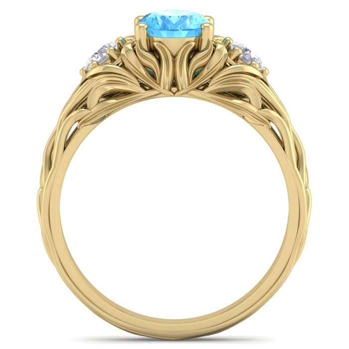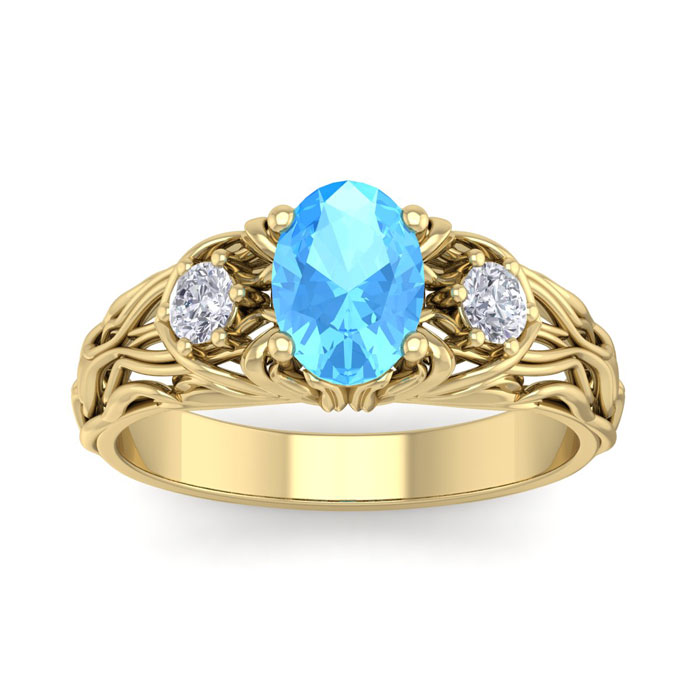 1 1/4 Carat Oval Shape Blue Topaz and Diamond Intricate Vine Engagement Ring In 14 Karat Yellow Gold