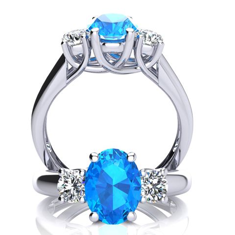 1 1/5 Carat Oval Shape Blue Topaz and Two Diamond Ring In 14 Karat White Gold