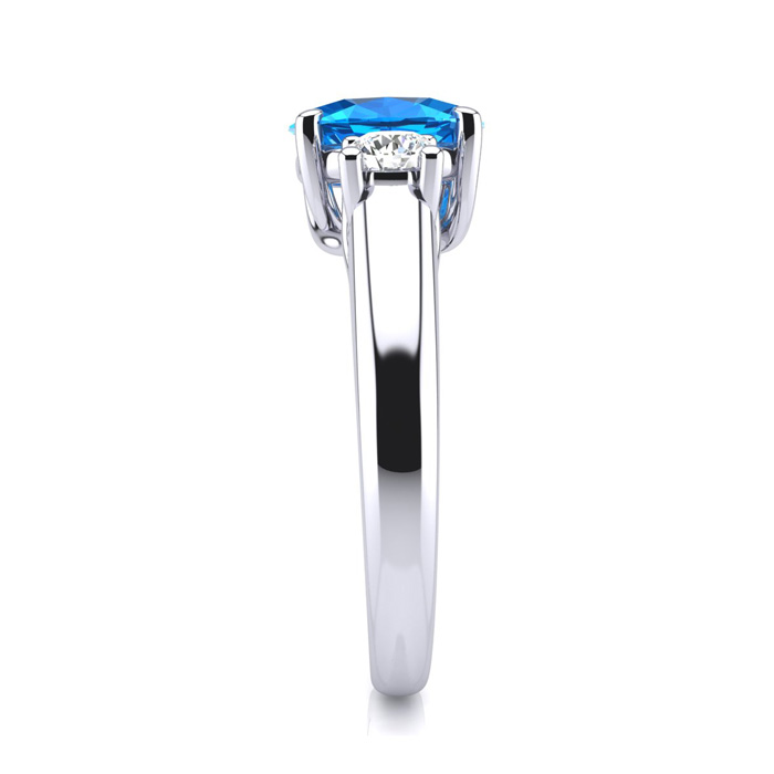 1 1/5 Carat Oval Shape Blue Topaz and Two Diamond Ring In 14 Karat White Gold