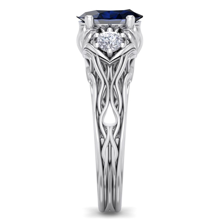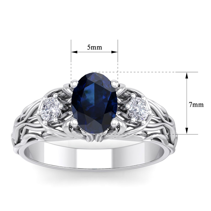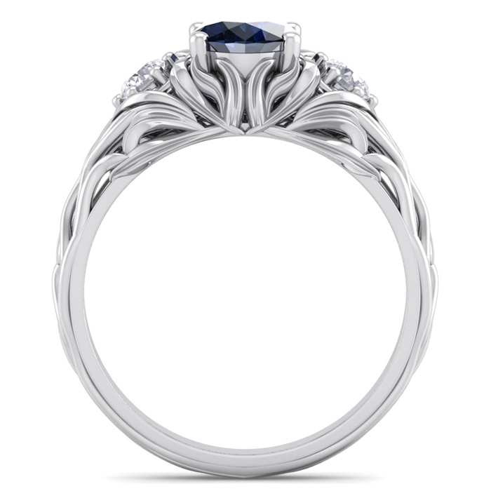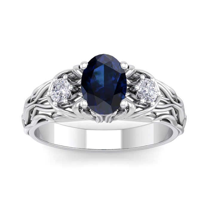 1 1/4 Carat Oval Shape Sapphire and Diamond Intricate Vine Engagement Ring In 14 Karat White Gold