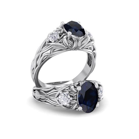 1 1/4 Carat Oval Shape Sapphire and Diamond Intricate Vine Engagement Ring In 14 Karat White Gold
