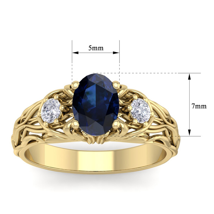 1 1/4 Carat Oval Shape Sapphire and Diamond Intricate Vine Engagement Ring In 14 Karat Yellow Gold