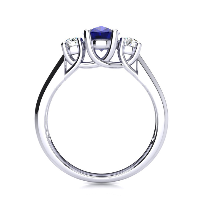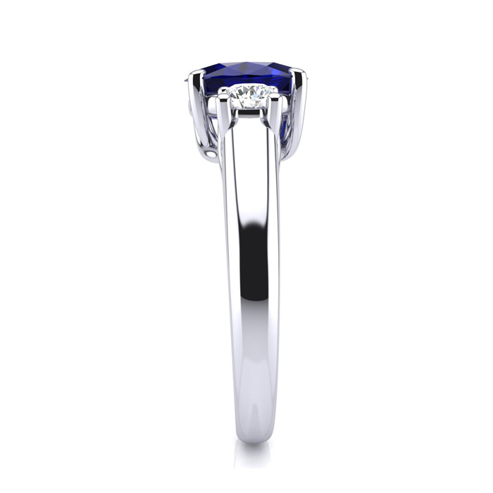 This stunning gemstone and diamond ring features one 7x5mm oval shape sapphire gemstone at 1.00 carats. It is surrounded by 2 sparkling diamonds in I-J color, I1-I2 clarity at 0.20 carats. Total gem weight is 1.20 carats. This ring is crafted in 14 karat white gold.