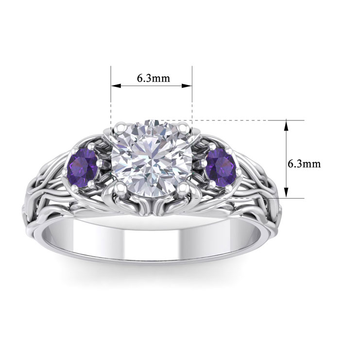 1 1/4 Carat Round Shape Diamond and Amethyst Vine Engagement Ring In 14 Karat White Gold