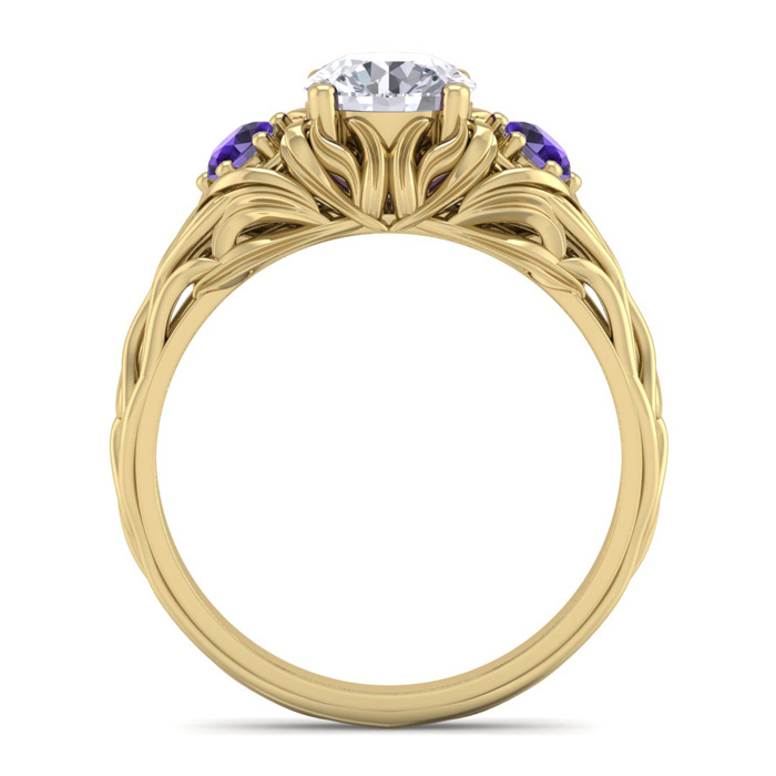 1 1/4 Carat Round Shape Diamond and Amethyst Vine Engagement Ring In 14 Karat Yellow Gold