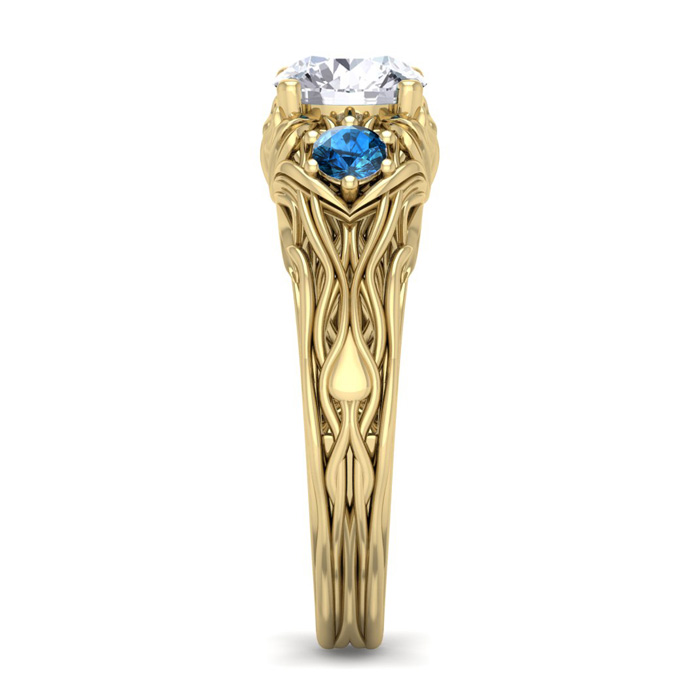 1 1/4 Carat Round Shape Diamond and Blue Diamond Vine Engagement Ring In 14 Karat Yellow Gold