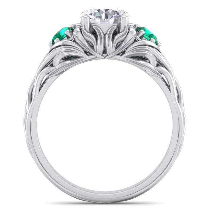 1 1/4 Carat Natural Round Shape Diamond and Emerald Vine Engagement Ring In 14 Karat White Gold