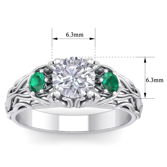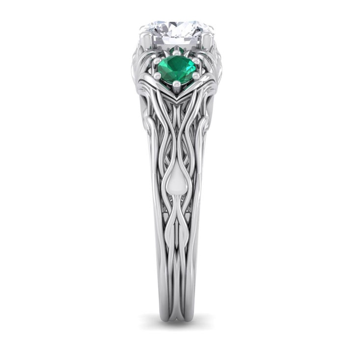 1 1/4 Carat Natural Round Shape Diamond and Emerald Vine Engagement Ring In 14 Karat White Gold