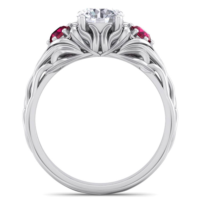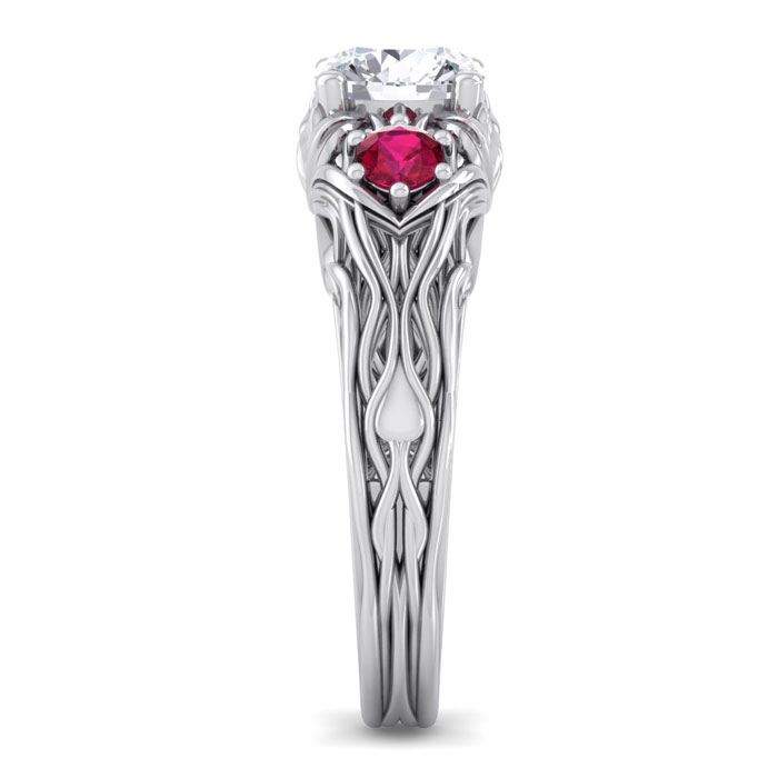 1 1/4 Carat Natural Round Shape Diamond and Ruby Vine Engagement Ring In 14 Karat White Gold