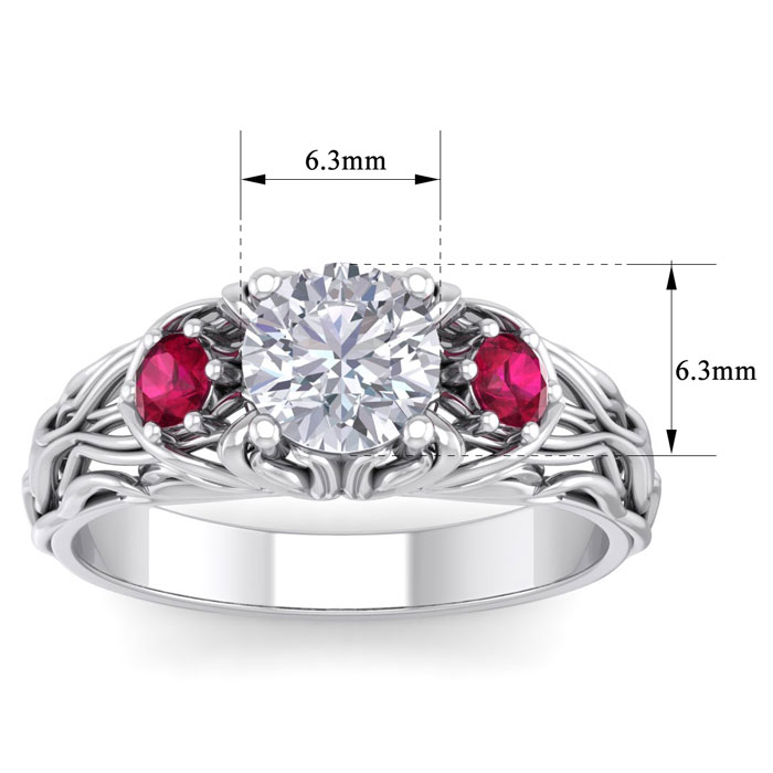 1 1/4 Carat Natural Round Shape Diamond and Ruby Vine Engagement Ring In 14 Karat White Gold