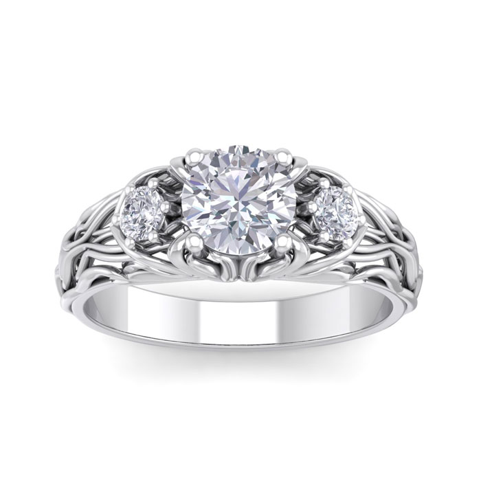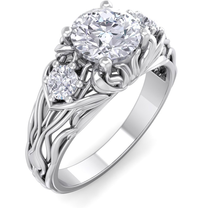 1 1/4 Carat Natural Round Shape Diamond Intricate Vine Engagement Ring In 14 Karat White Gold