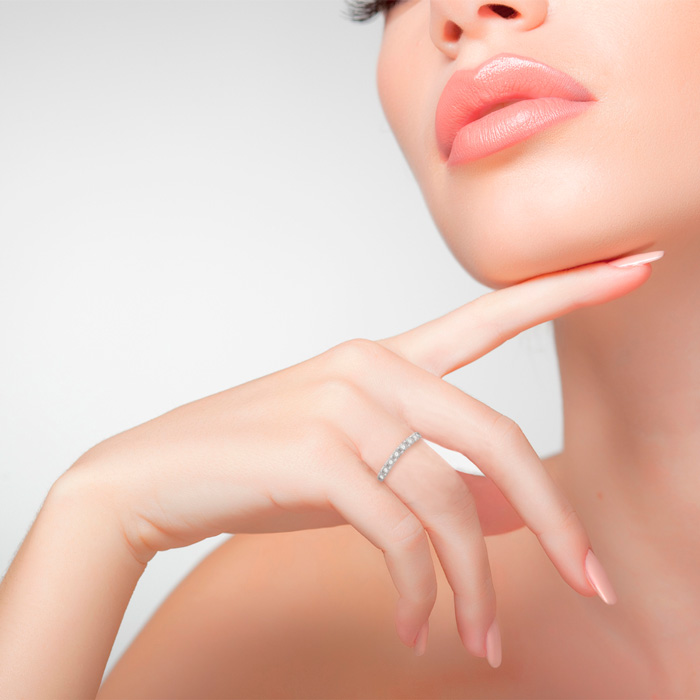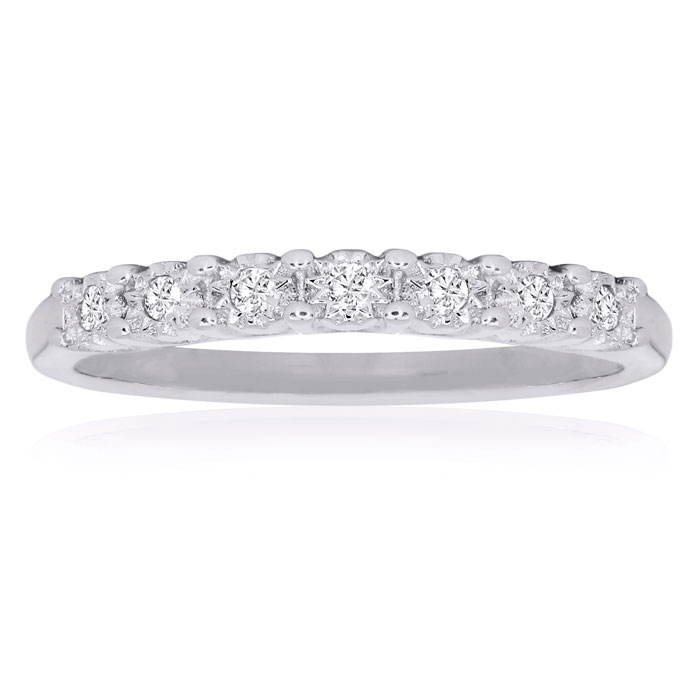 love the simplicity of this band. I can wear it with another ring or wear it as a band by itself. It sparkles and shines, yet so very simple. Thank You Super Jeweler--PD.
