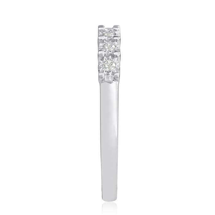 I love this dainty ring, and wear it everyday. I would have rated it 5 stars if the diamonds were more brilliant, but then again, if they were, the ring would've cost more. --Titra.