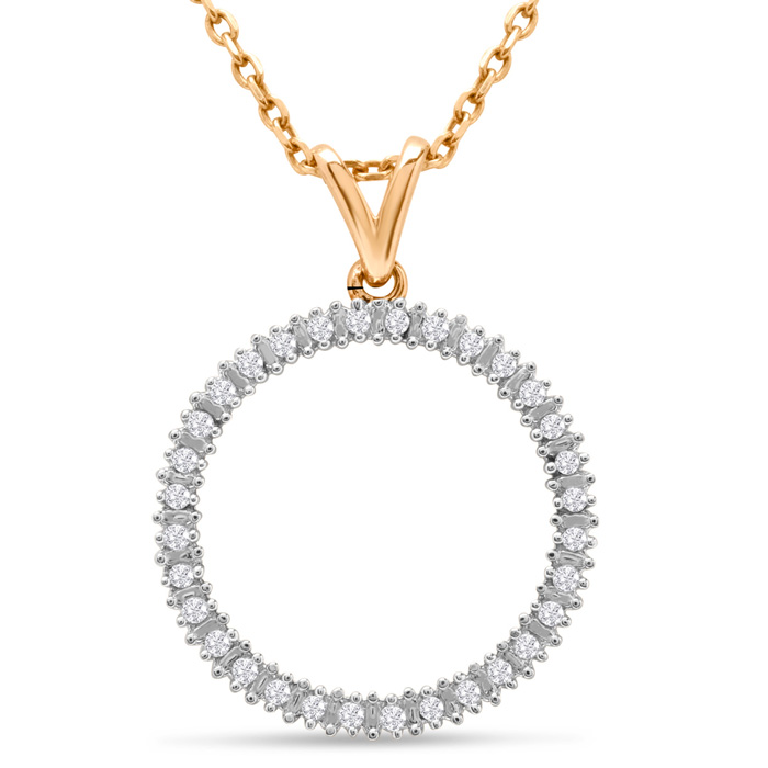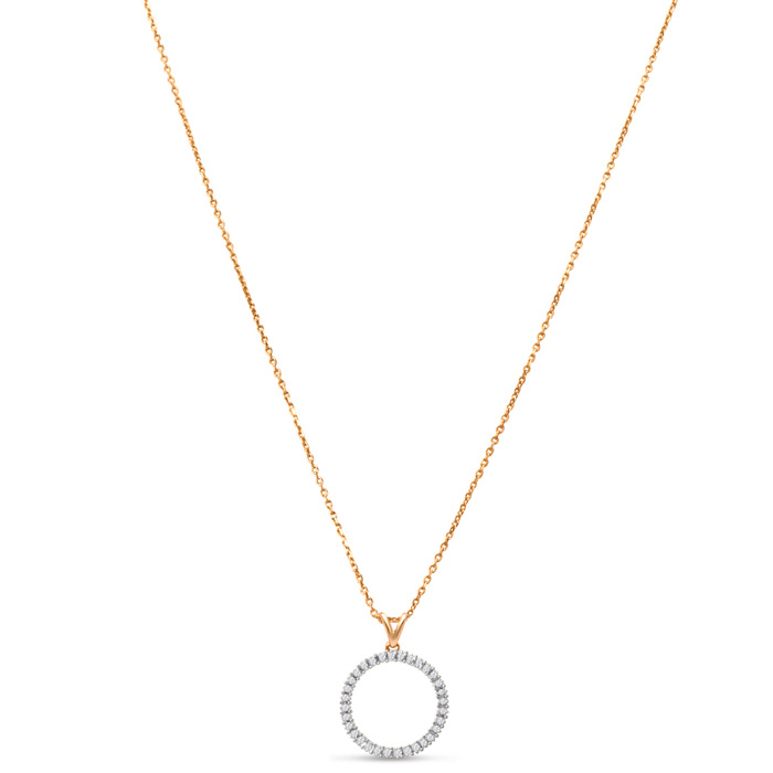1/10 Carat Diamond Circle Necklace In 14K Rose Gold Over Sterling Silver, 18 Inches