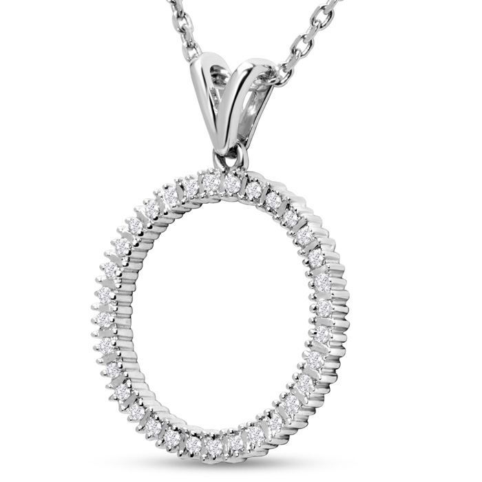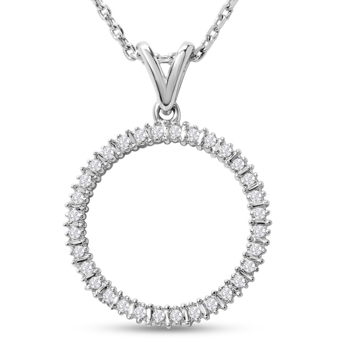 1/10 Carat Diamond Circle Necklace In Sterling Silver, 18 Inches