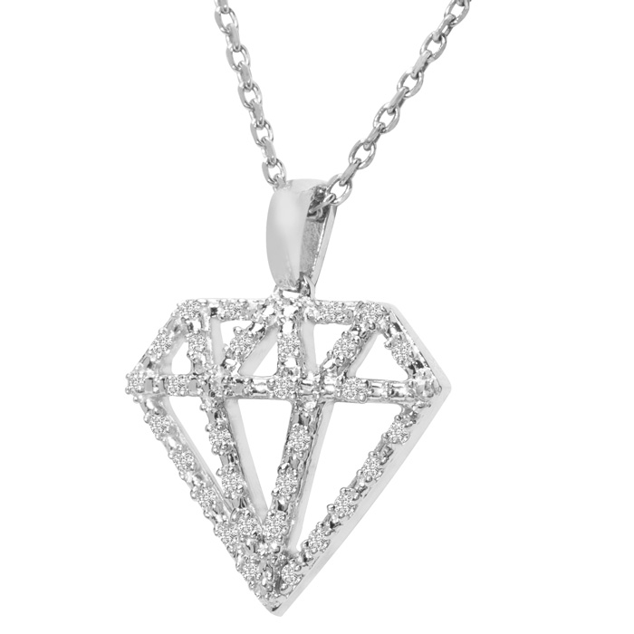 1/10 Carat Diamond Shape Diamond Necklace In Sterling Silver, 18 Inches