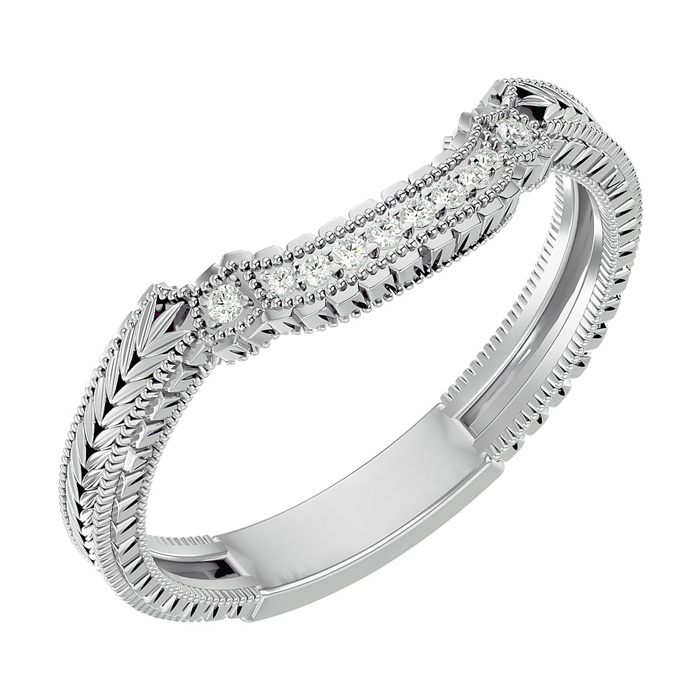 This elegant diamond wedding band for a ring features 10 sparkling diamonds in I-J color, I1-I2 clarity at approximately 1/10 carat total weight. This ring is in 10 karat white gold.
