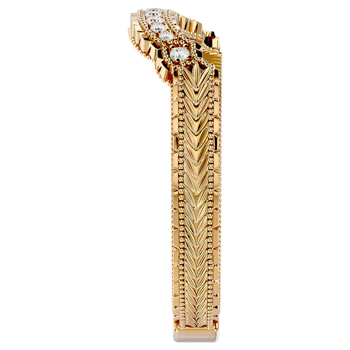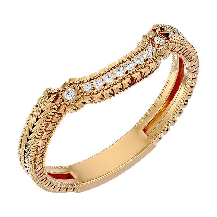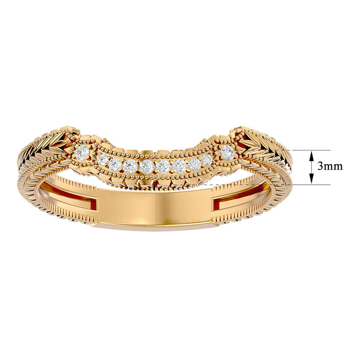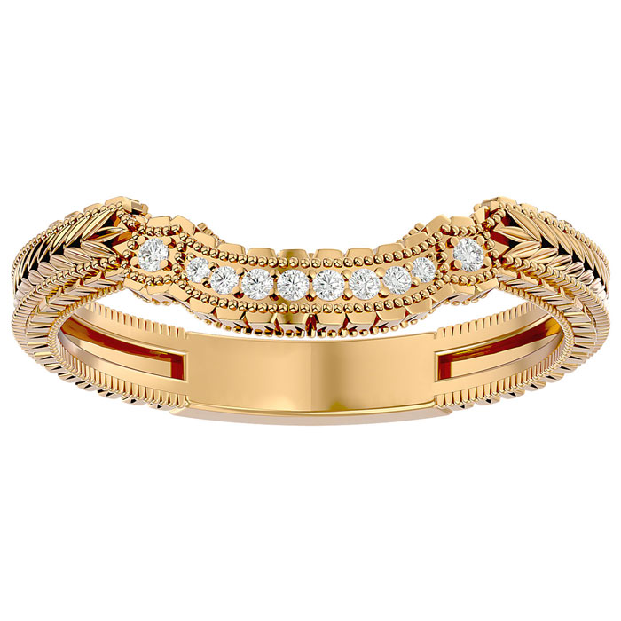 This elegant diamond wedding band for a ring features 10 sparkling diamonds in I-J color, I1-I2 clarity at approximately 1/10 carat total weight. This ring is in 10 karat yellow gold.