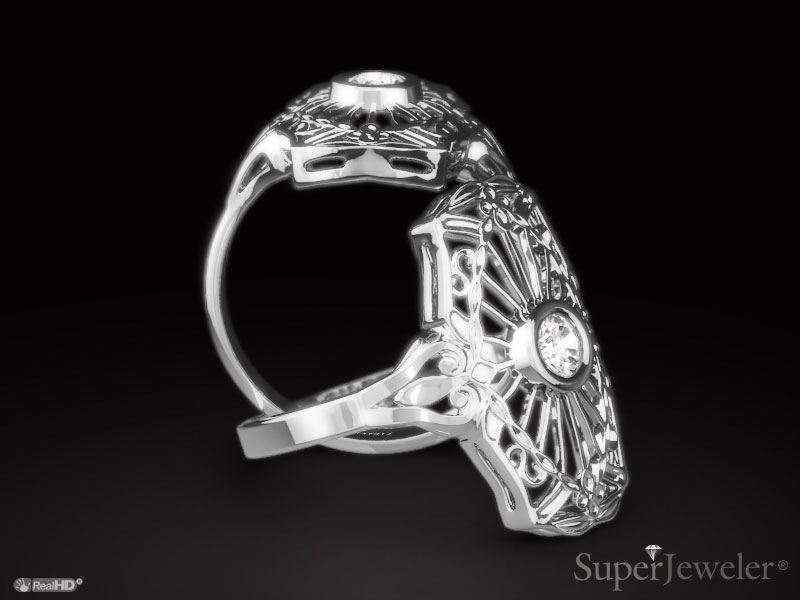 This is the perfect ring for those of us who like a little drama! A brand new addition to SuperJeweler's inventory, this stunning ring contains a sleek bezel set diamond offset by an ornate, white gold cathedral measuring 3/4 inches. I love everything about this piece, and it's definitely the kind of ring that gets you noticed!