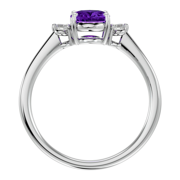 1.15 Carat Oval Shape Amethyst and Two Diamond Ring In 14 Karat White Gold