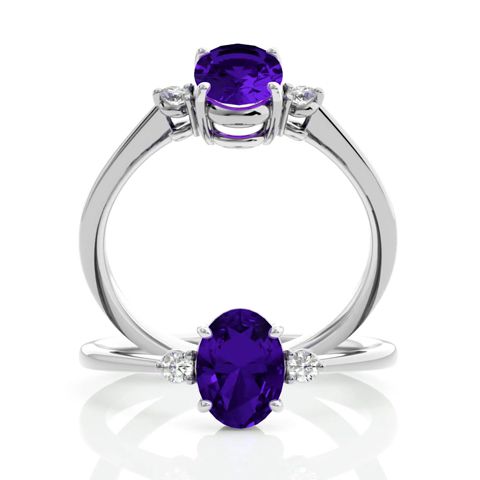 1.15 Carat Oval Shape Amethyst and Two Diamond Ring In 14 Karat White Gold