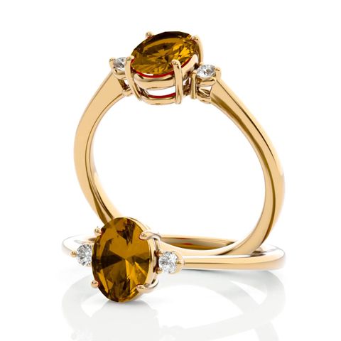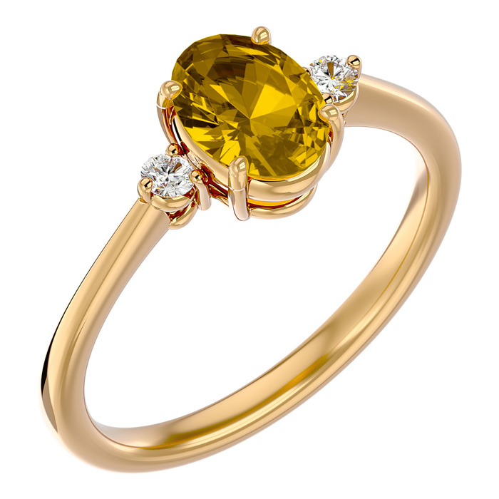 1.15 Carat Oval Shape Citrine and Two Diamond Ring In 14 Karat Yellow Gold
