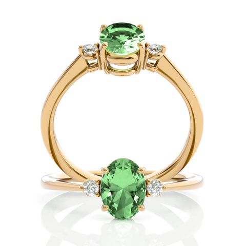 1.15 Carat Oval Shape Green Amethyst and Two Diamond Ring In 14 Karat Yellow Gold