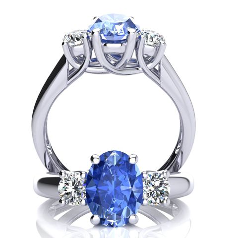 1.15 Carat Oval Shape Tanzanite and Two Diamond Ring In 14 Karat White Gold