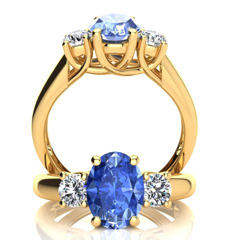 1.15 Carat Oval Shape Tanzanite and Two Diamond Ring In 14 Karat Yellow Gold