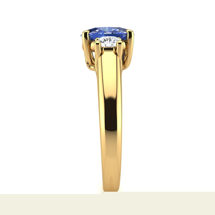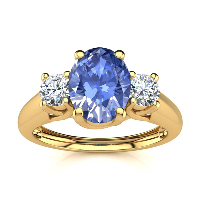1.15 Carat Oval Shape Tanzanite and Two Diamond Ring In 14 Karat Yellow Gold