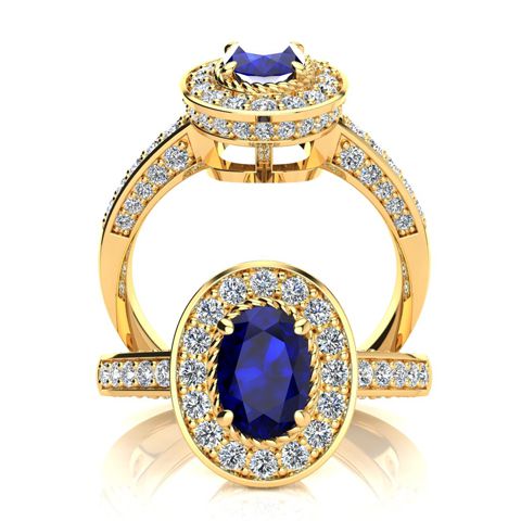 1 2/3 Carat Oval Shape Sapphire and Halo Diamond Ring In 14 Karat Yellow Gold