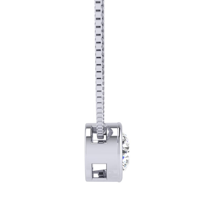 1/2 Carat Natural Bezel Set Diamond Solitaire Necklace in 14K White Gold, 18 Inches
