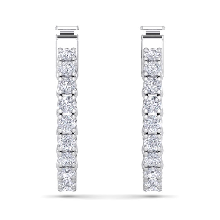 1/2 Carat Natural Diamond Hoop Earrings In 14 Karat White Gold, 1/2 Inch